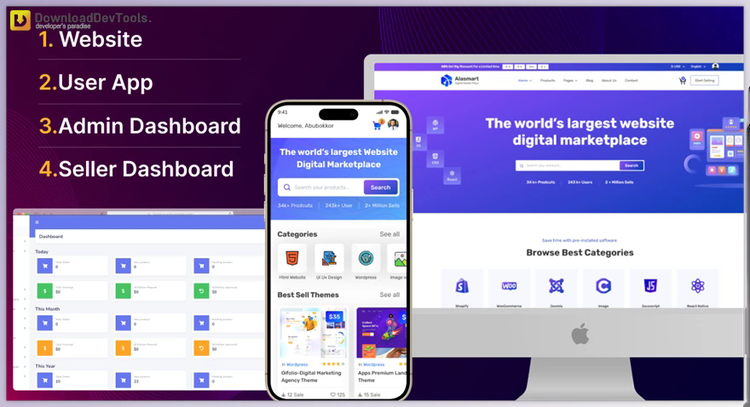 is a powerful marketplace solution designed to help you sell digital products like software, videos, audio, templates, and more. Built with the latest Laravel framework, it allows businesses to create a professional, multi-vendor platform where multiple sellers can list and manage their digital products. With a sleek, responsive design, Alasmart ensures customers have a seamless experience, whether they’re browsing on desktop or mobile devices.