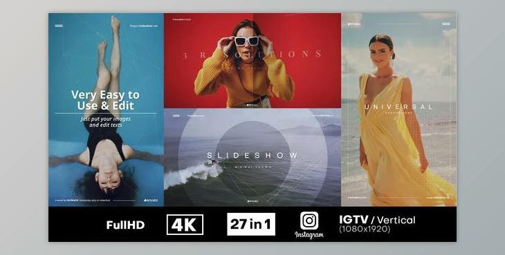 - All of the slideshow in 3 Resolutions: FullHD 1920×1080, IGTV 1080×1920, 4K 3840×2160